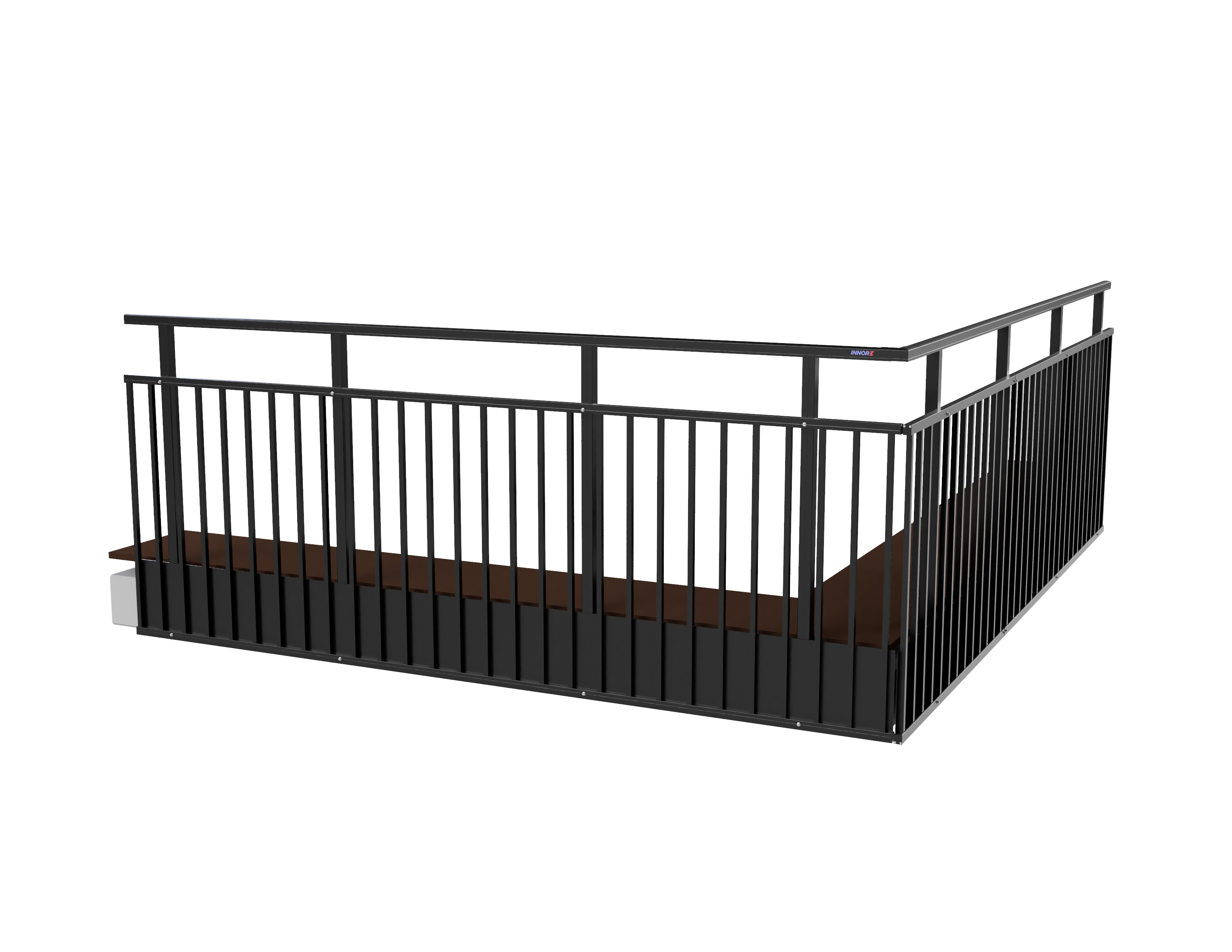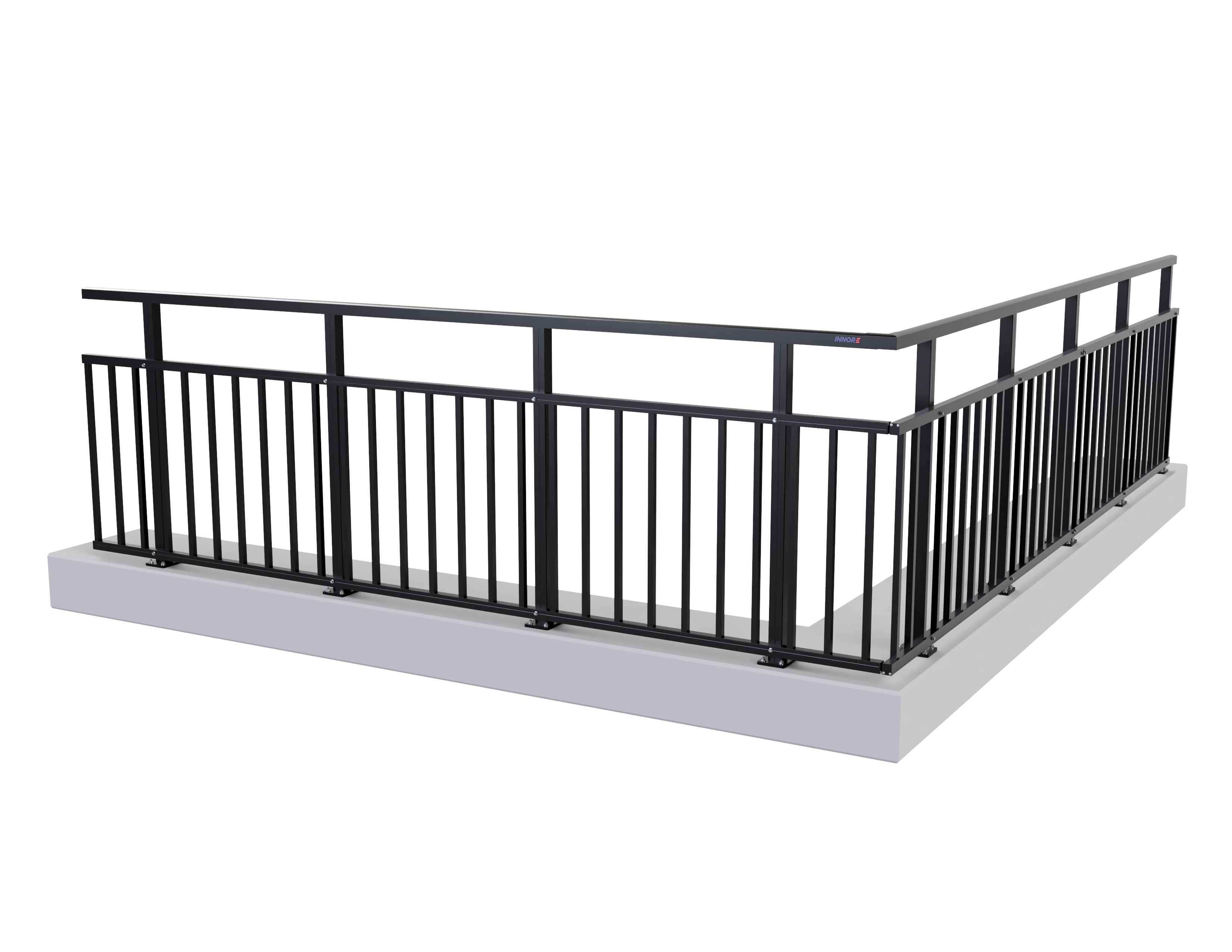A-LINE BODO er et aluminiumrekkverkssystem med vertikale spiler (20 × 20 mm) montert på horisontale aluminiumsprofiler (34 × 29 mm). Rekkverket kan monteres side- eller toppmontert på konstruksjonen og gir et rent og moderne uttrykk, samtidig som det opprettholder høy styrke og holdbarhet.
