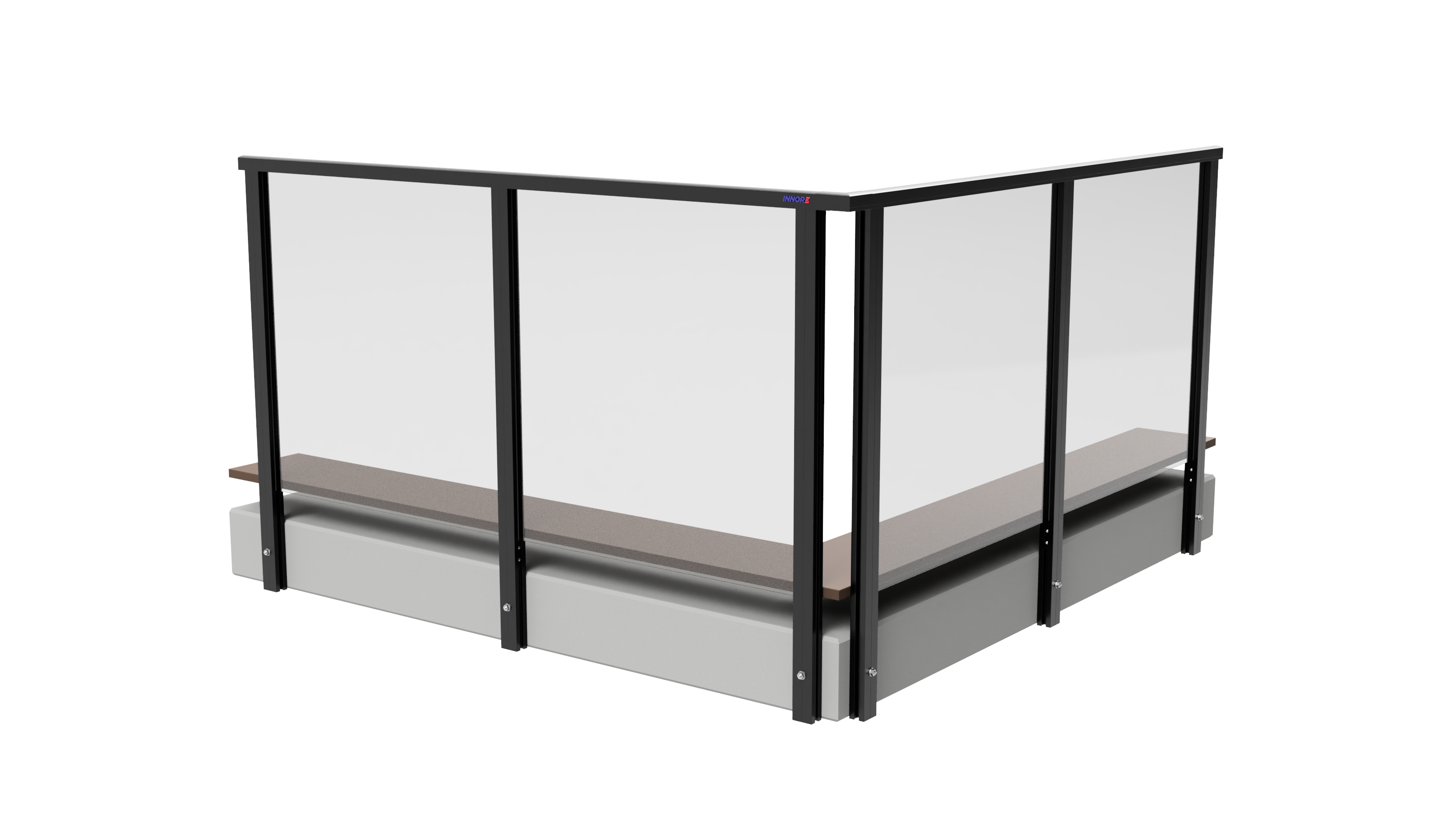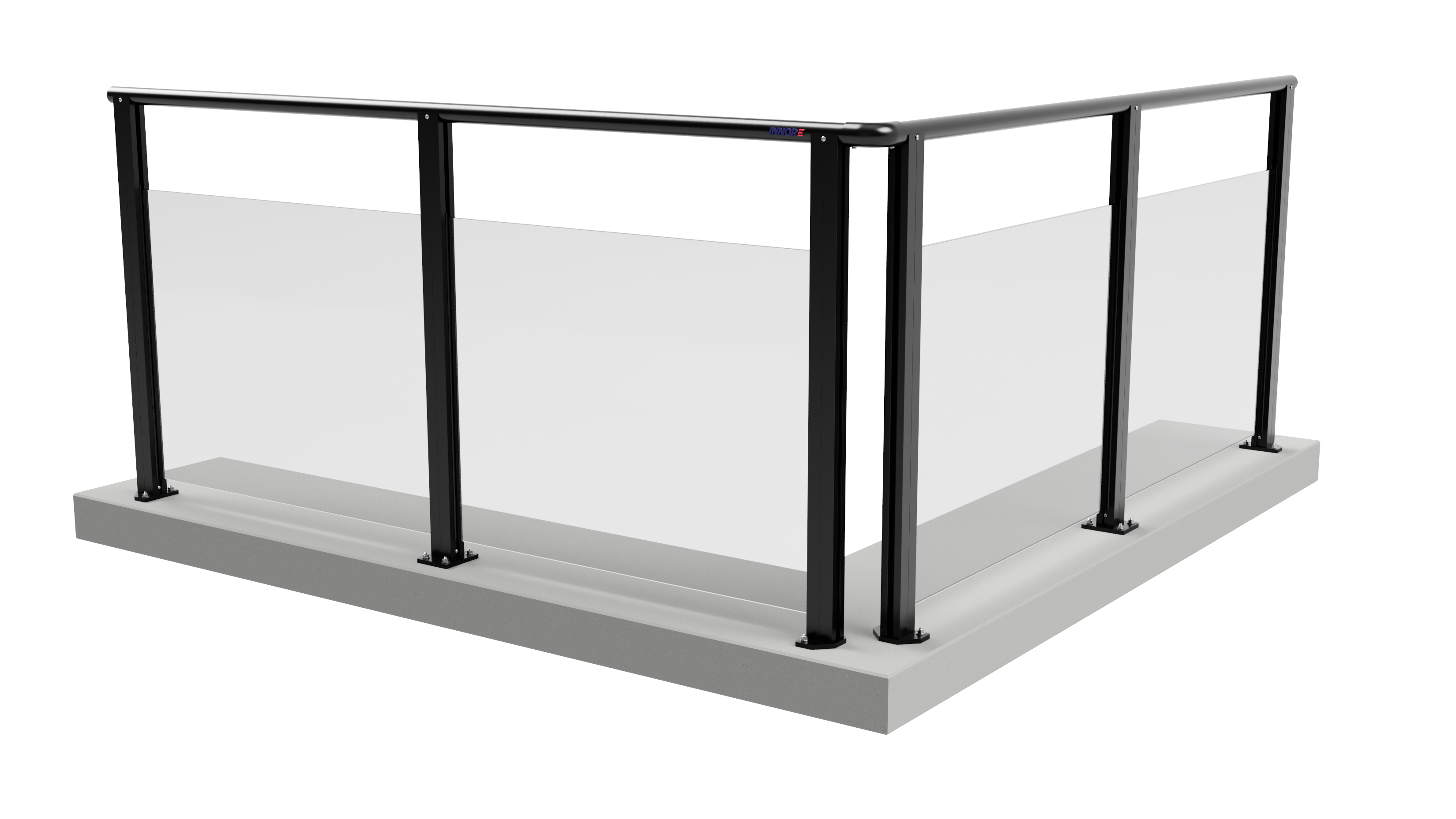 Et stilrent og slitesterkt aluminium glassrekkverkssystem der sikkerhetsglass monteres mellom stolpene. Ideelt for balkonger og terrasser, og gir et transparent, moderne uttrykk kombinert med høy strukturell ytelse.