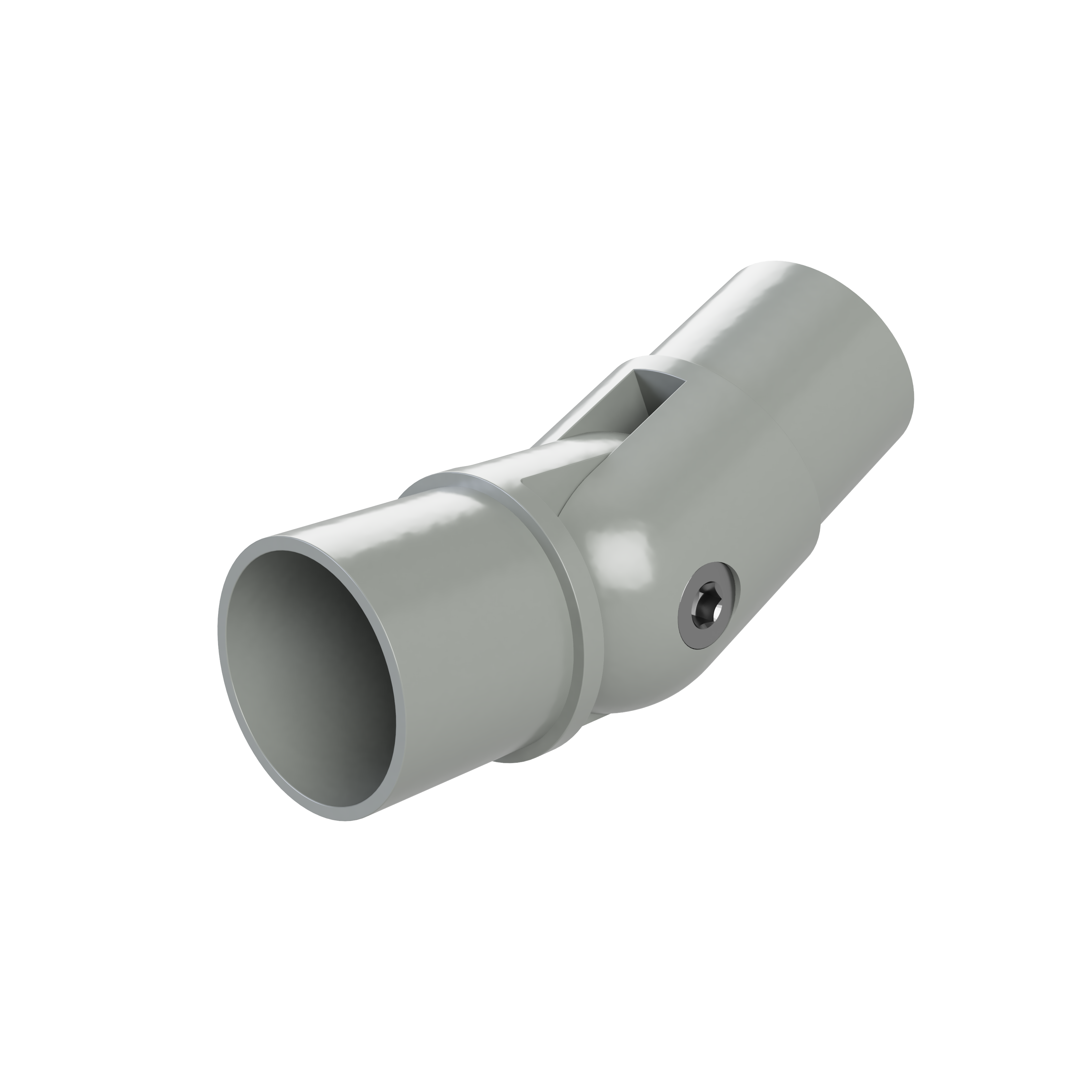 KM150-koblingen er en robust, justerbar stålkobling utviklet for sammenføying av runde håndløpere med dimensjon 42,4 × 2,0 mm i variable vinkler fra 0° til 90°. Den leddede konstruksjonen muliggjør enkel og presis vinkeljustering på stedet, noe som gjør den ideell for trapper, ramper og skrå rekkverksinstallasjoner.