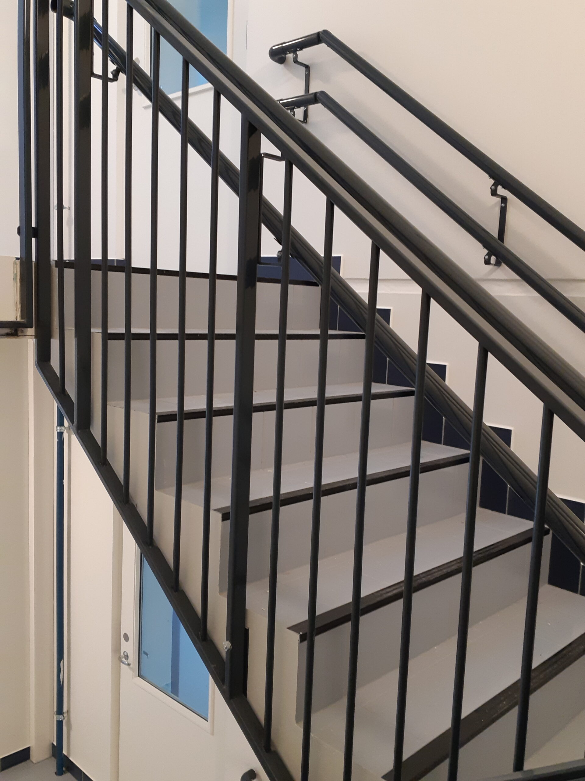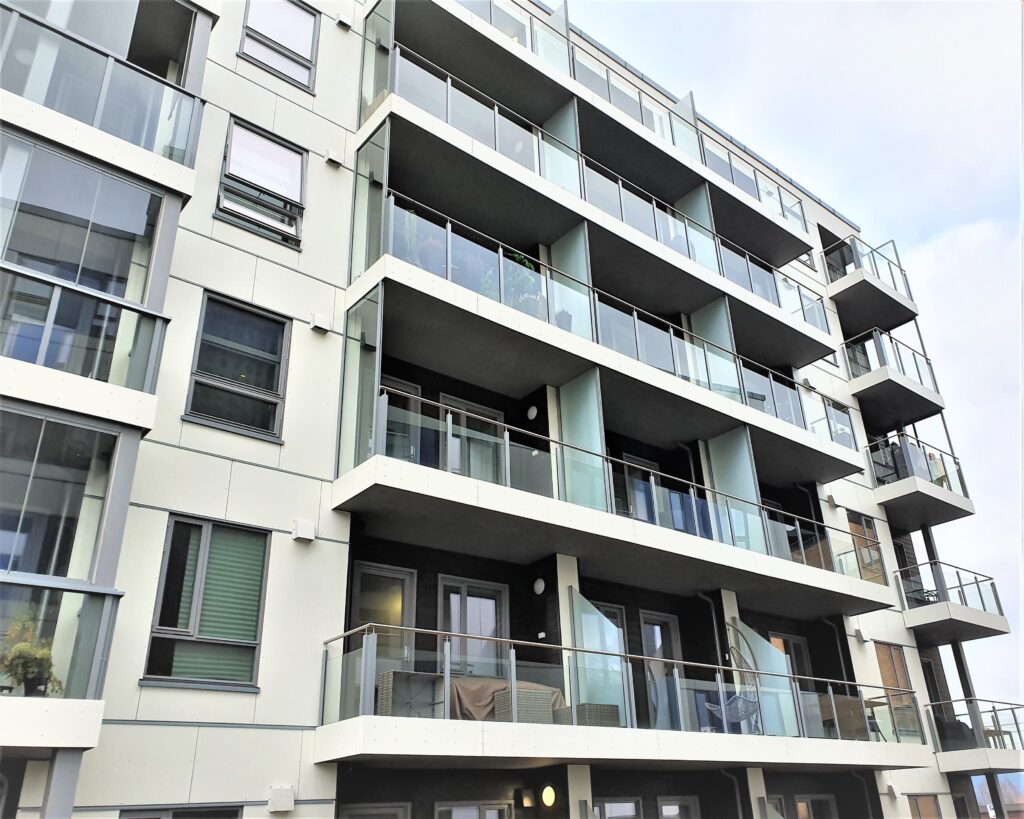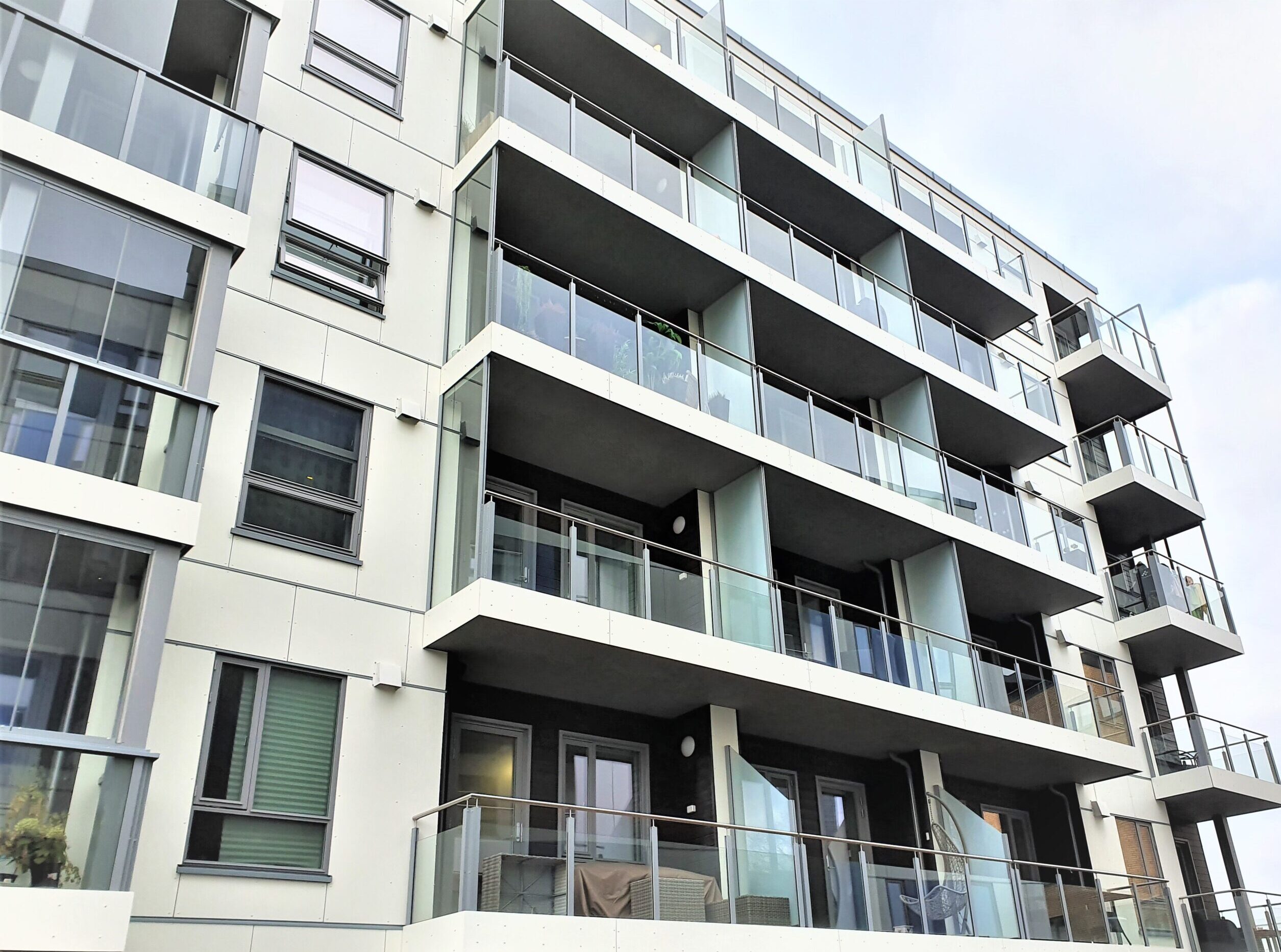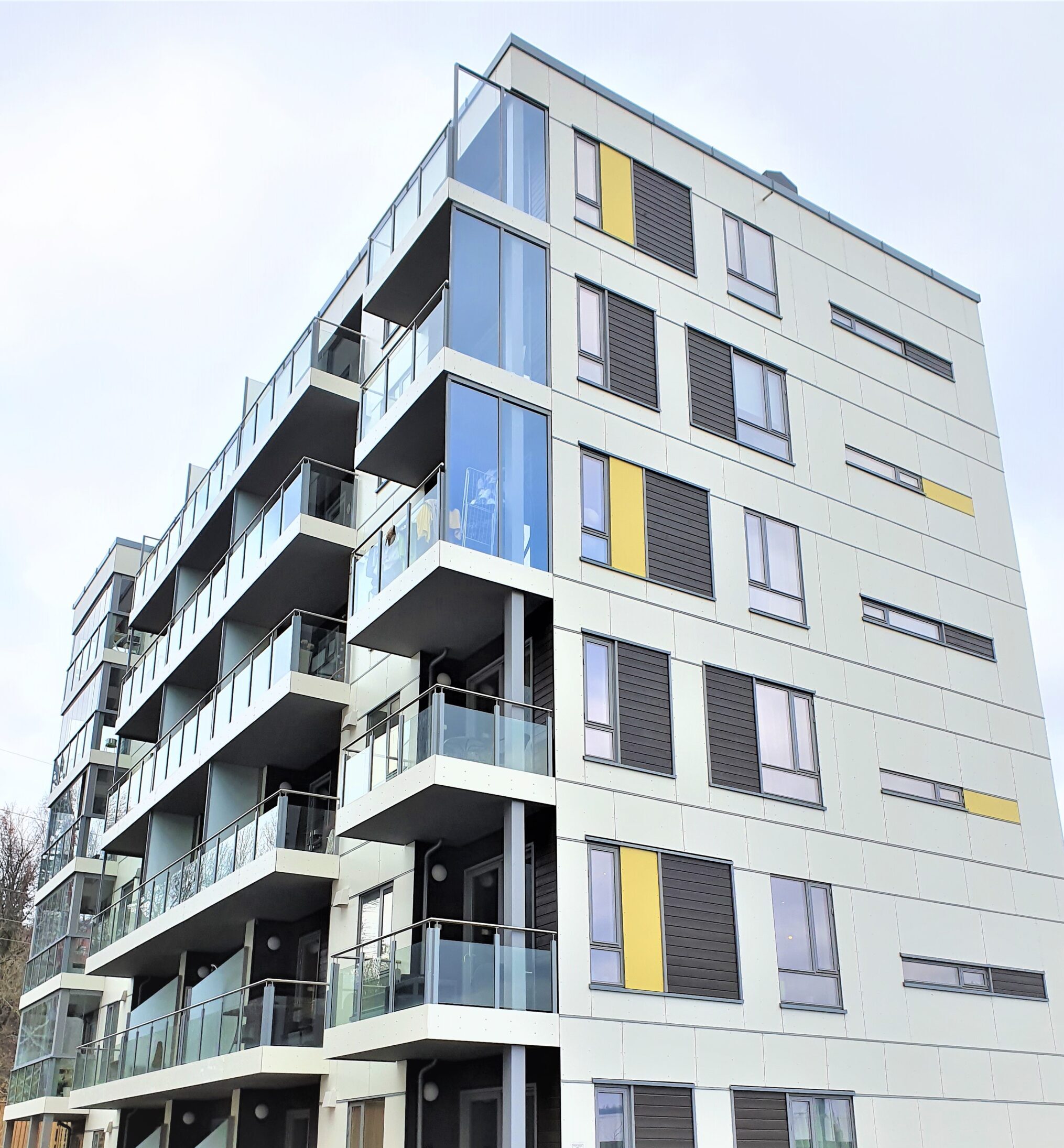 Innore leverte og installerte G-line glassrekkverk for balkonger, sammen med innvendige trapperekkverk. Denne løsningen kombinerer moderne design med forbedrede sikkerhetsfunksjoner.