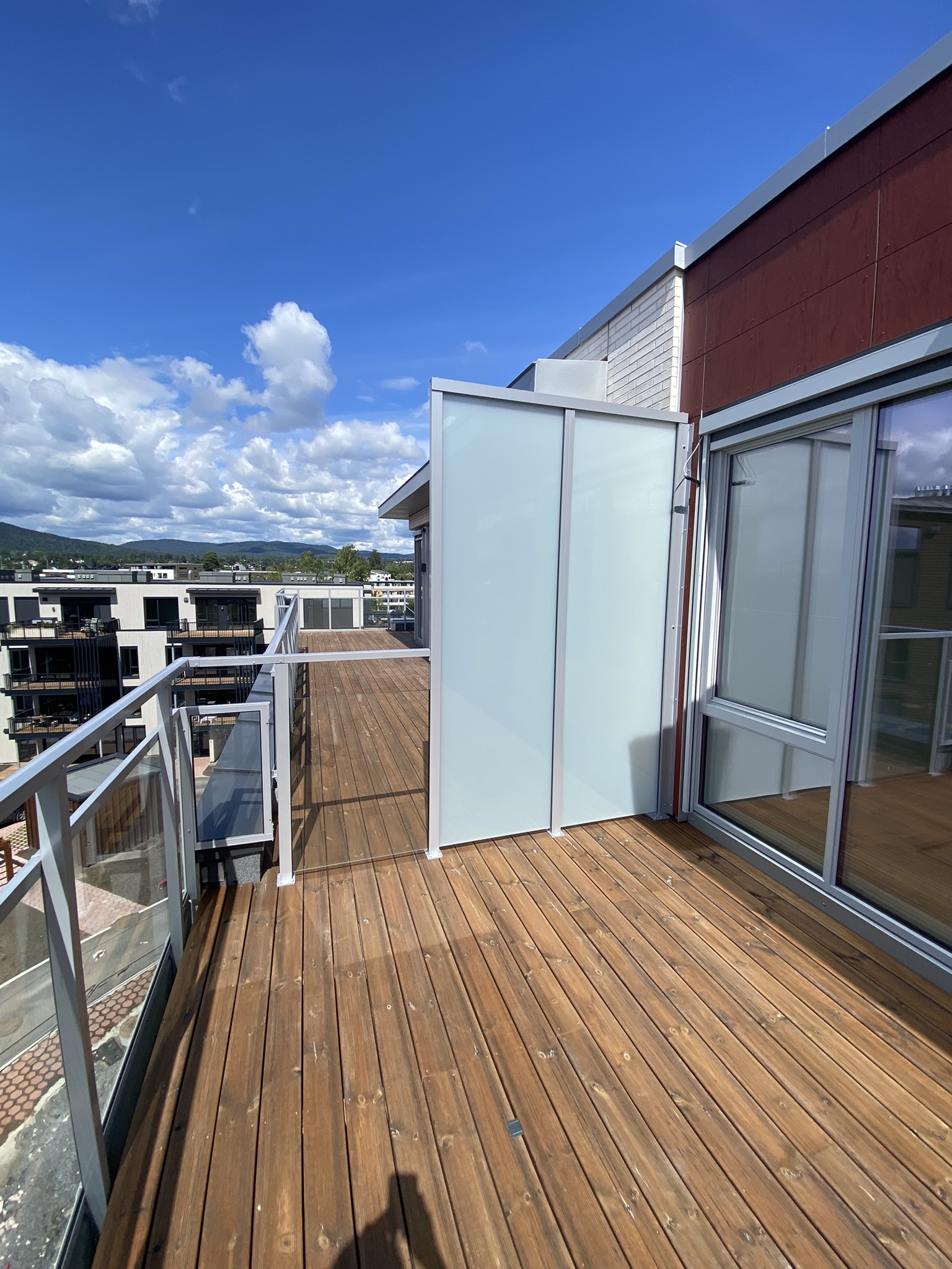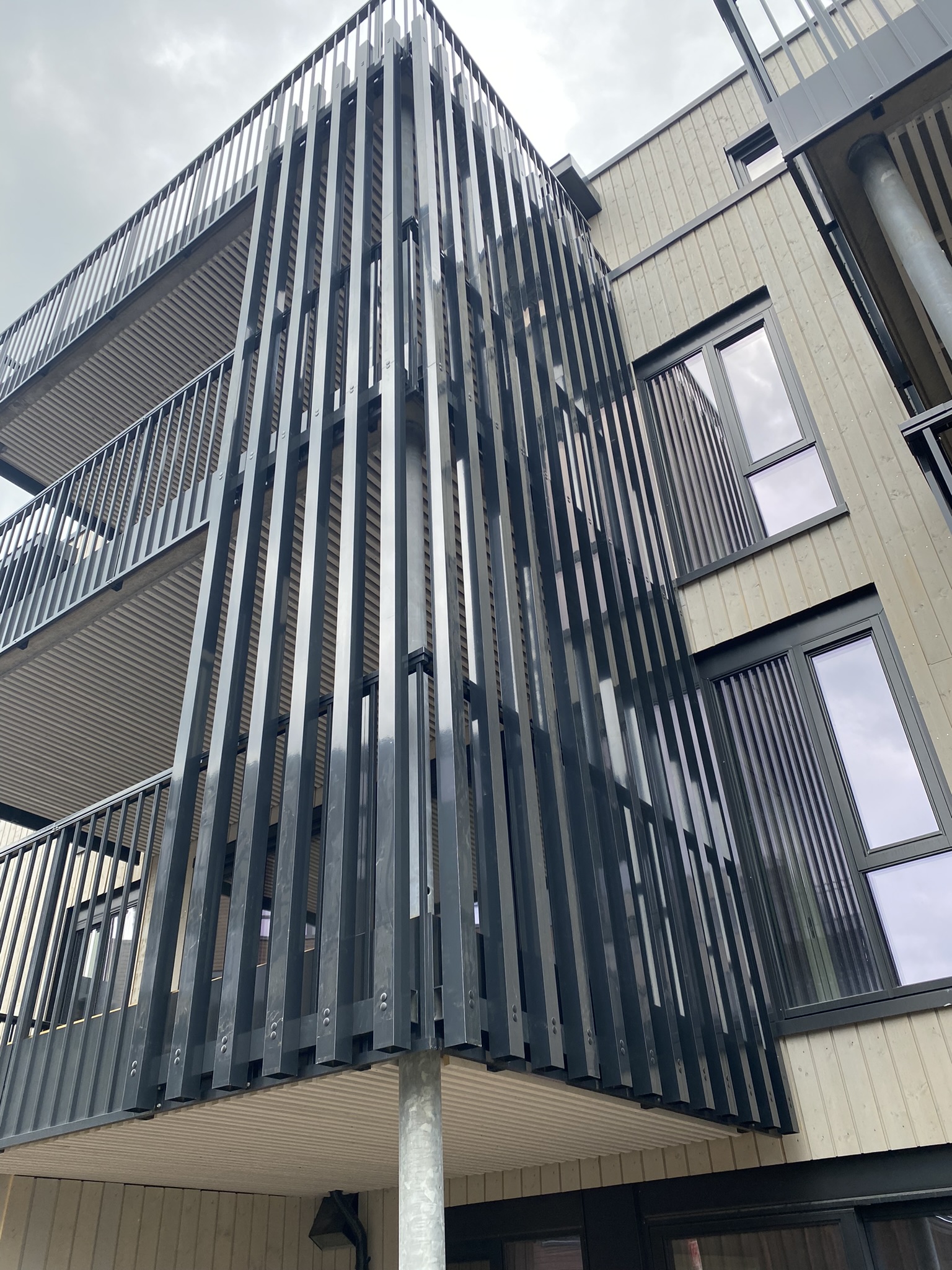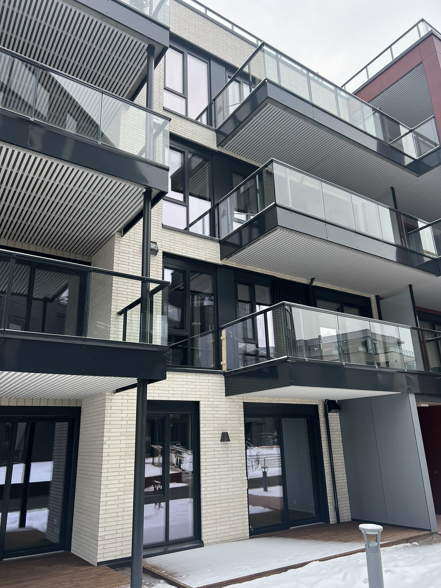 Vi har produsert og installert G-line Oslo glassrekkverk til en leilighetsblokk i Norge, og levert et elegant design som oppfyller sikkerhetsstandarder og forbedrer bygningens estetikk. Vi har også produsert og installert elegante glassoverbygg som forbedrer både funksjonaliteten og den arkitektoniske appellen.