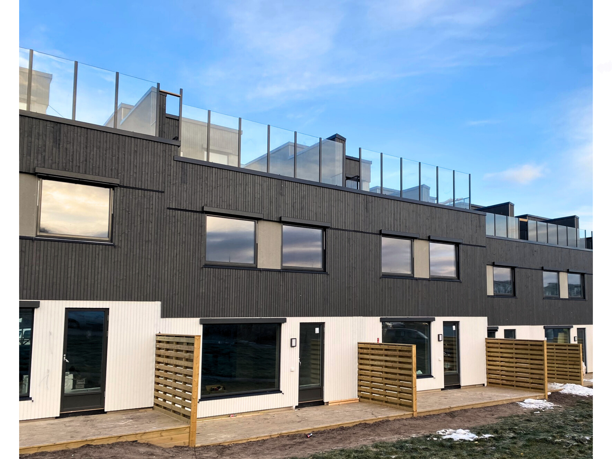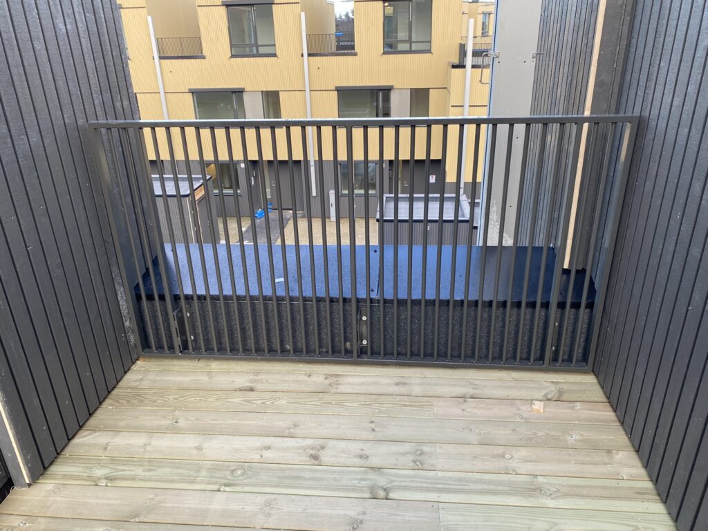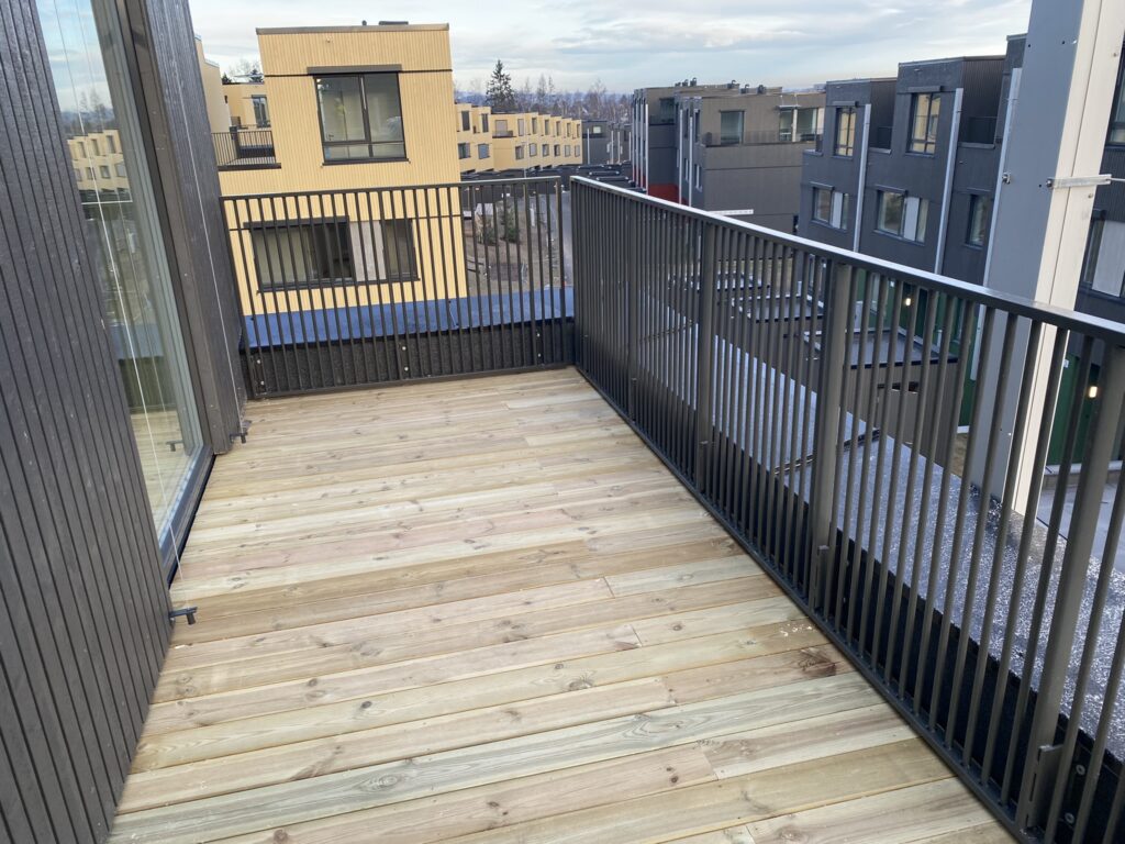 Innore leverte og installerte G-line Bodo glassrekkverk og stakittrekkverk til balkonger og takterrasser, som gir både eleganse og sikkerhet. I tillegg ble det installert elegante og holdbare glassoverbygg som gir både beskyttelse og visuell appell.