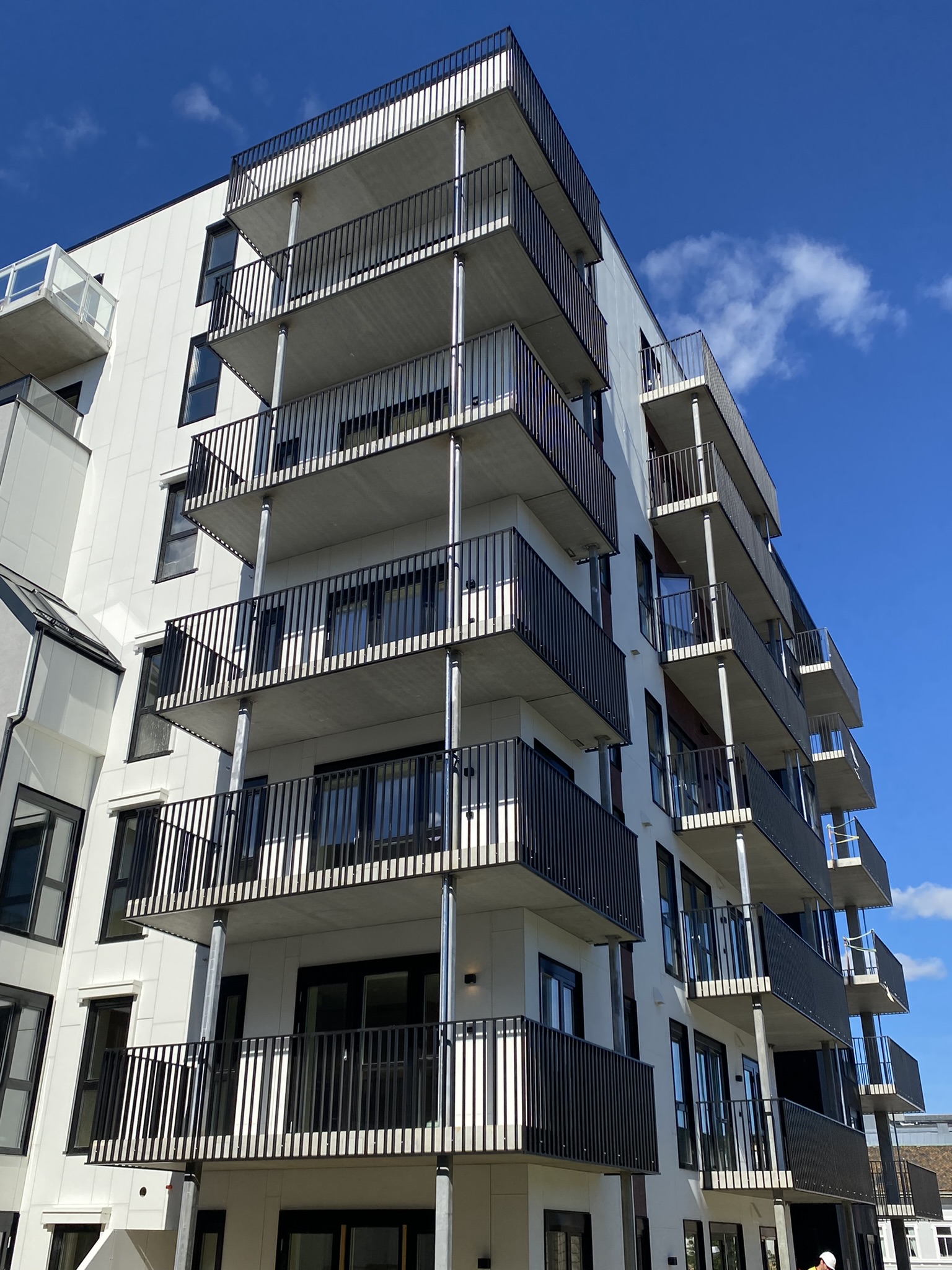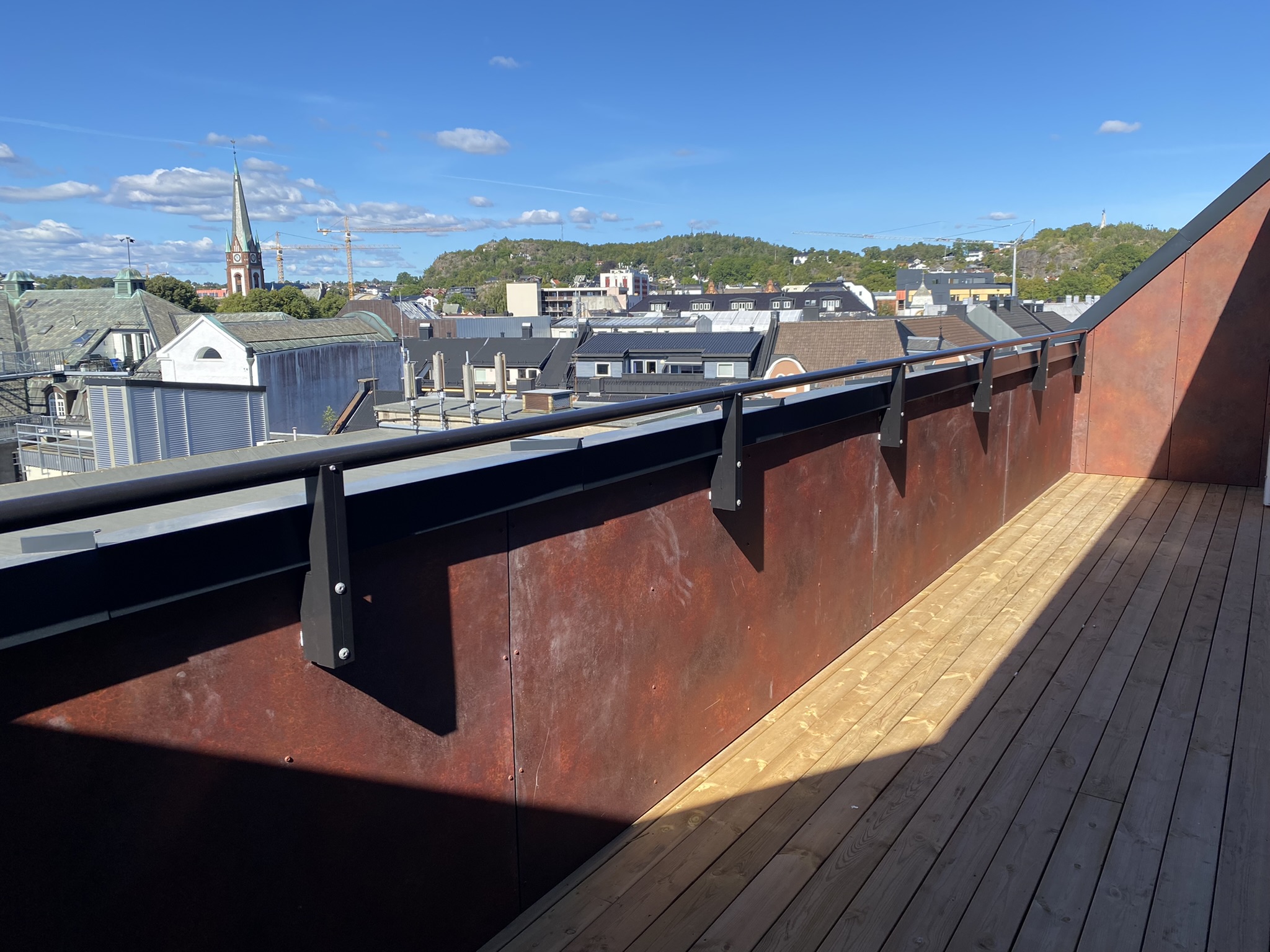 Innore leverte og installerte G-line Oslo glassrekkverk og stakittrekkverk til balkonger og takterrasser, som gir både eleganse og sikkerhet. I tillegg ble det installert elegante og holdbare franske balkonger i glass, som gir både beskyttelse og visuell appell.
