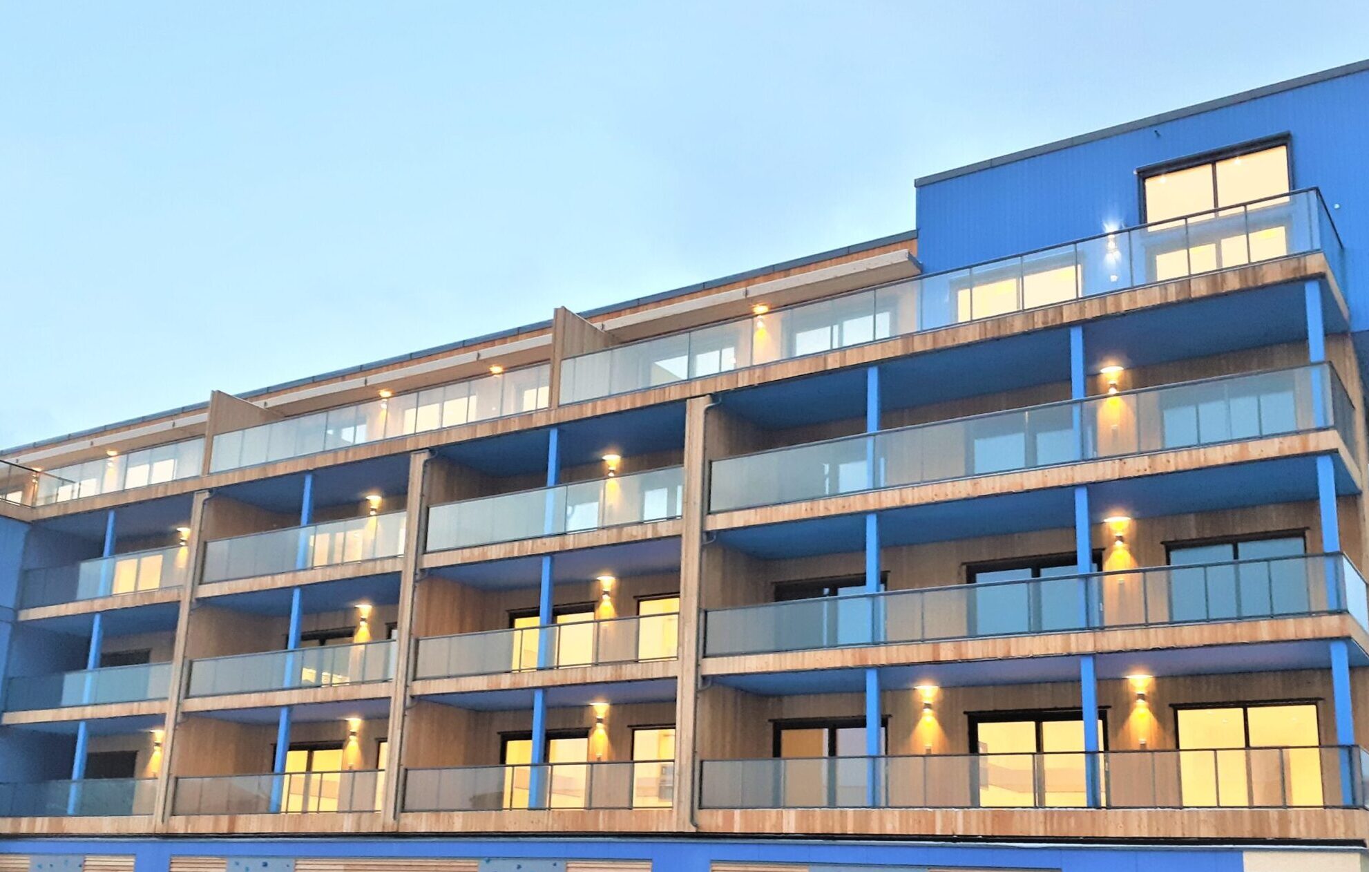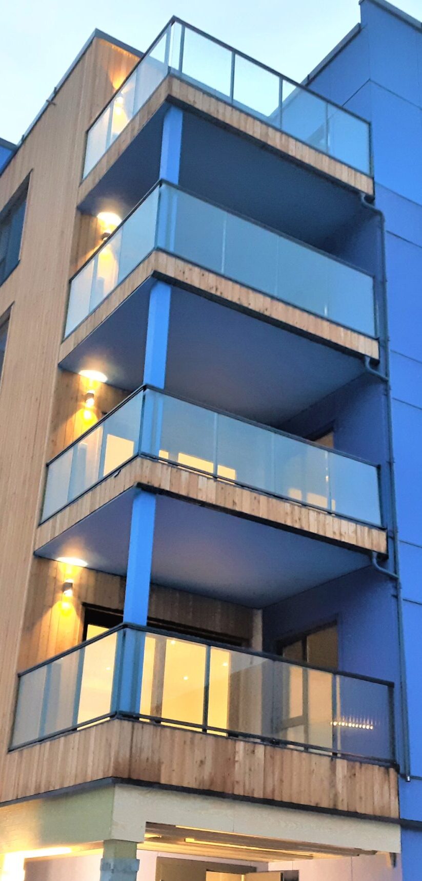 Innore leverte og installerte glassrekkverk til balkonger og takterrasser. Denne løsningen kombinerer moderne design med forbedrede sikkerhetsfunksjoner.