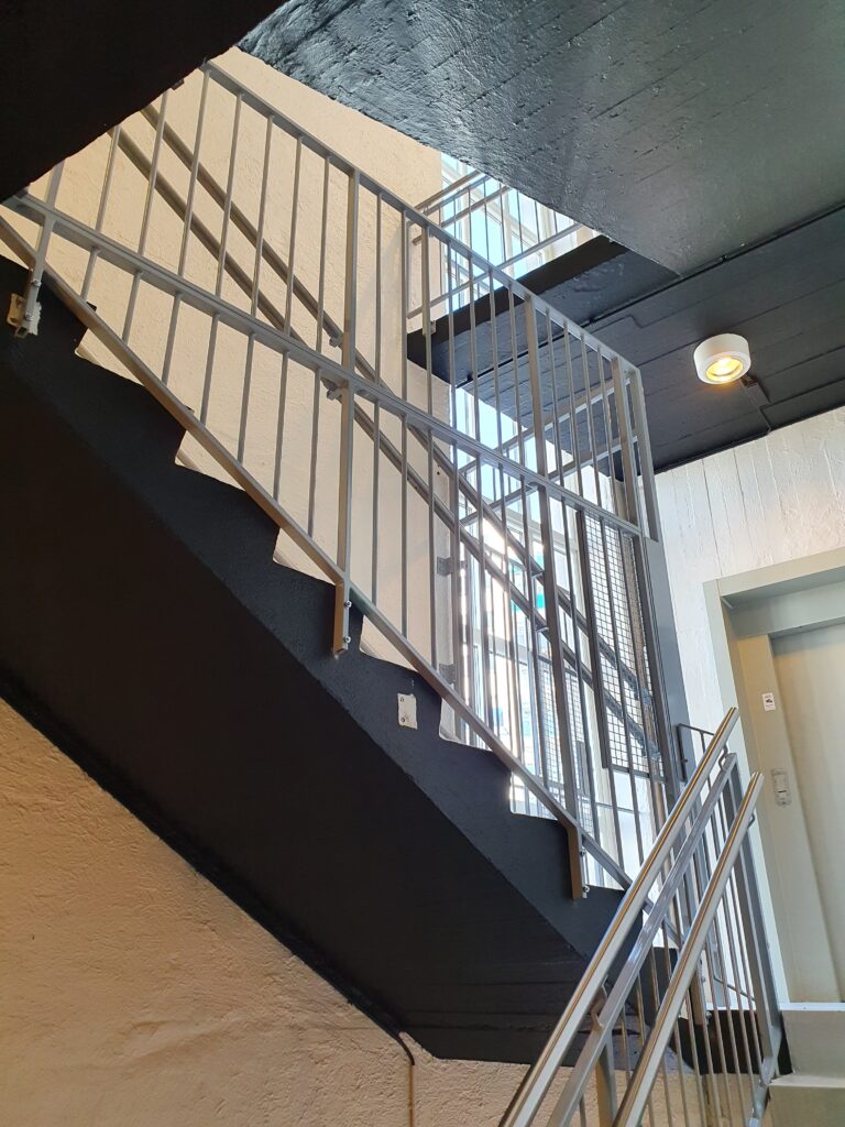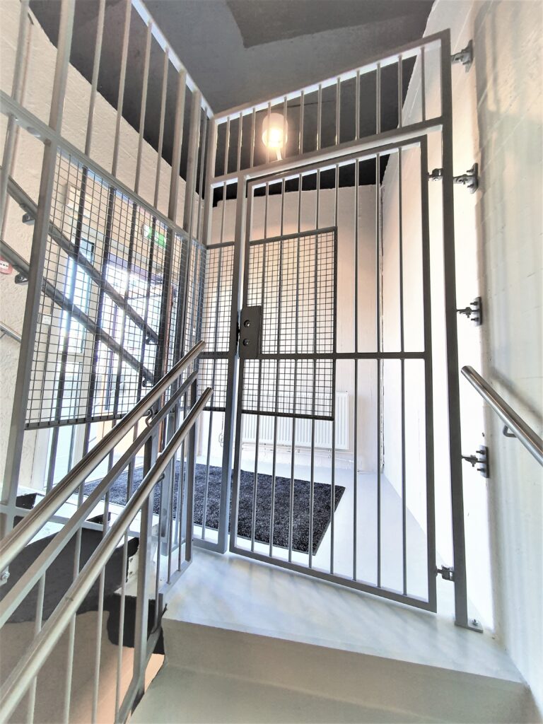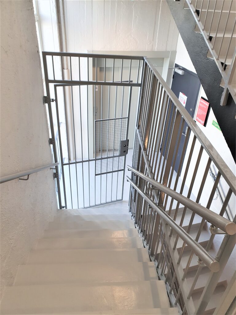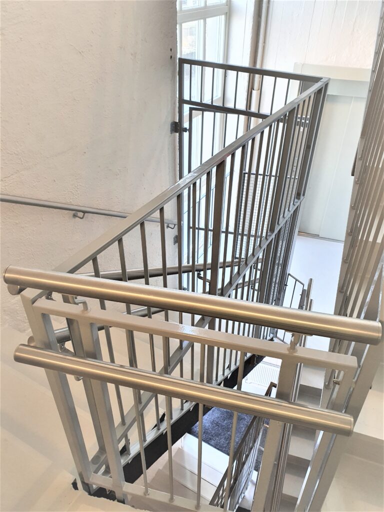 Vi leverte og installerte varmgalvaniserte stålrekkverk og porter til dette boligblokkprosjektet i Norge.