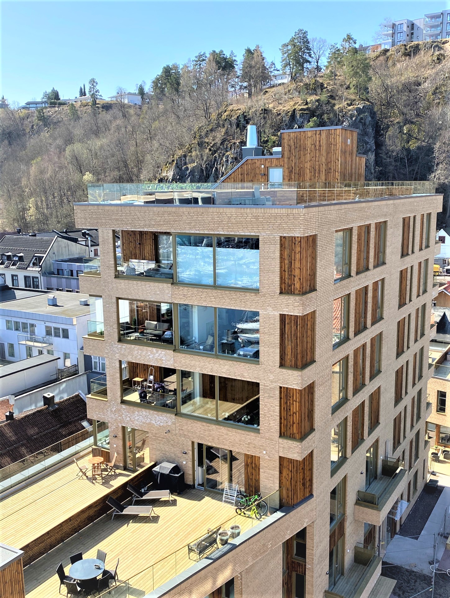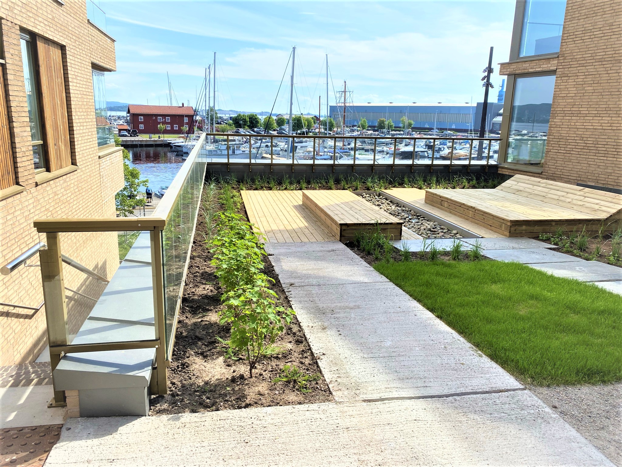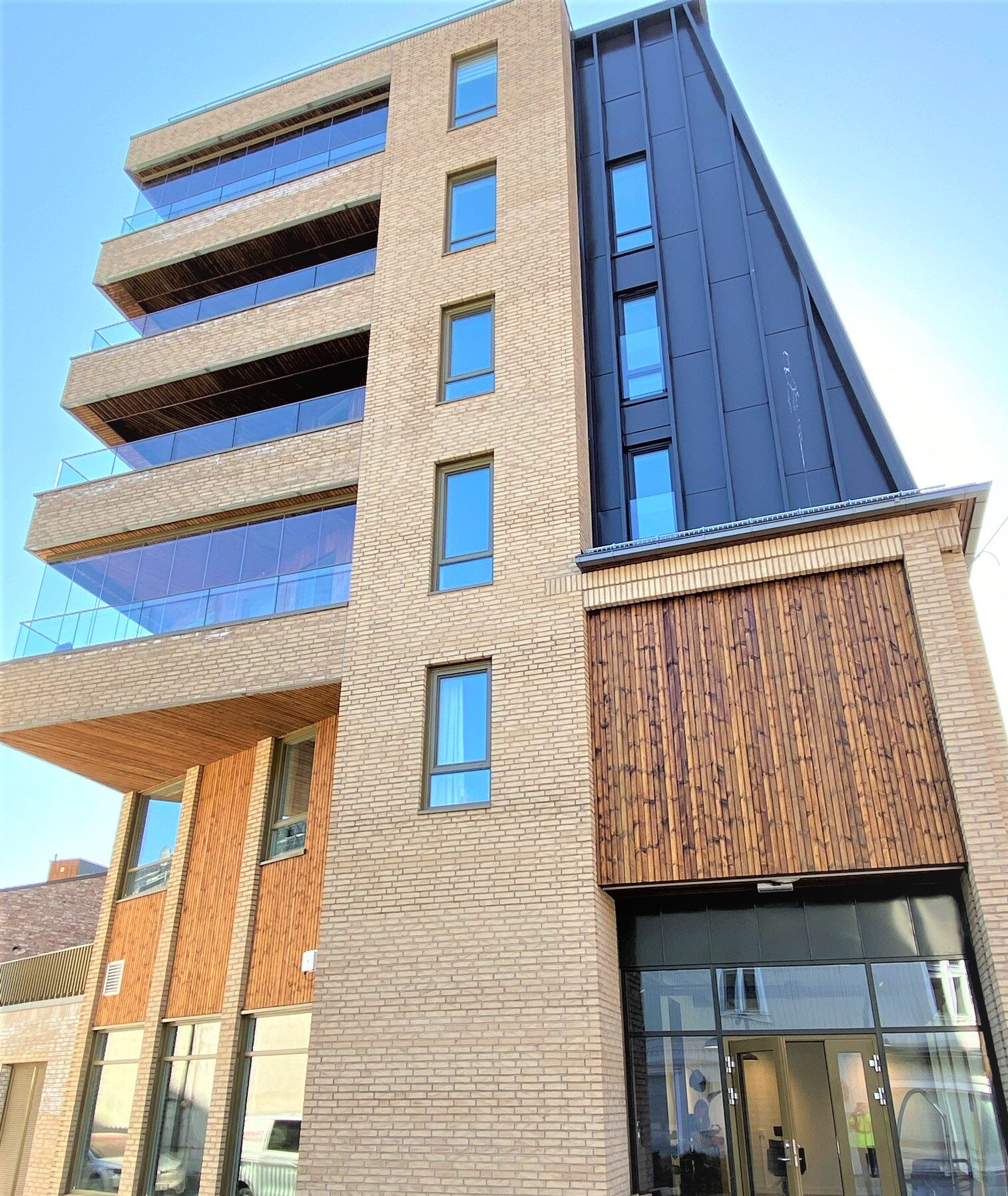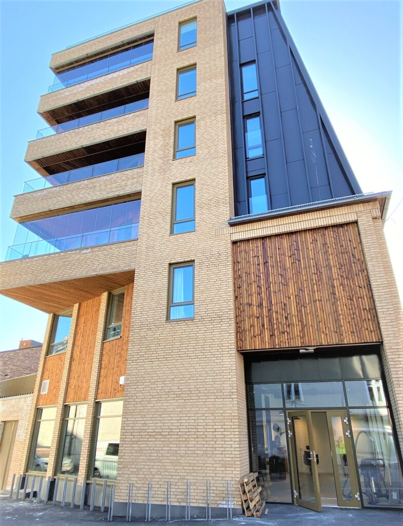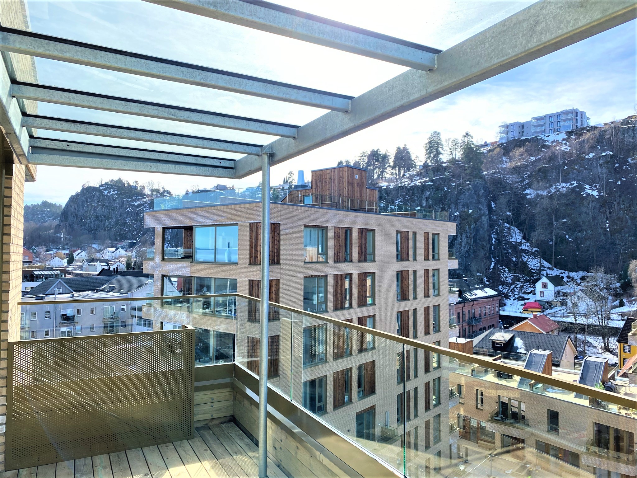 Innore leverte og installerte G-line Bergen glassrekkverk og stakittrekkverk til utvendige trapper, som gir både eleganse og sikkerhet. I tillegg ble det installert elegante og holdbare glassoverbygg som gir både beskyttelse og visuell appell. Hvert element ble laget og installert med presisjon, noe som sikrer sikkerhet, holdbarhet og et moderne design som passer perfekt til bygningens arkitektur.