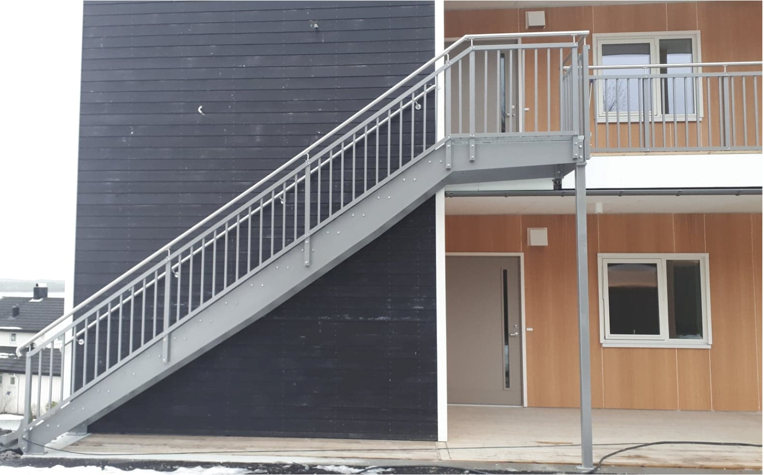 Innore leverte og installerte stålkonstruksjon for trapp og stålrekkverk til et prosjekt i Norge.