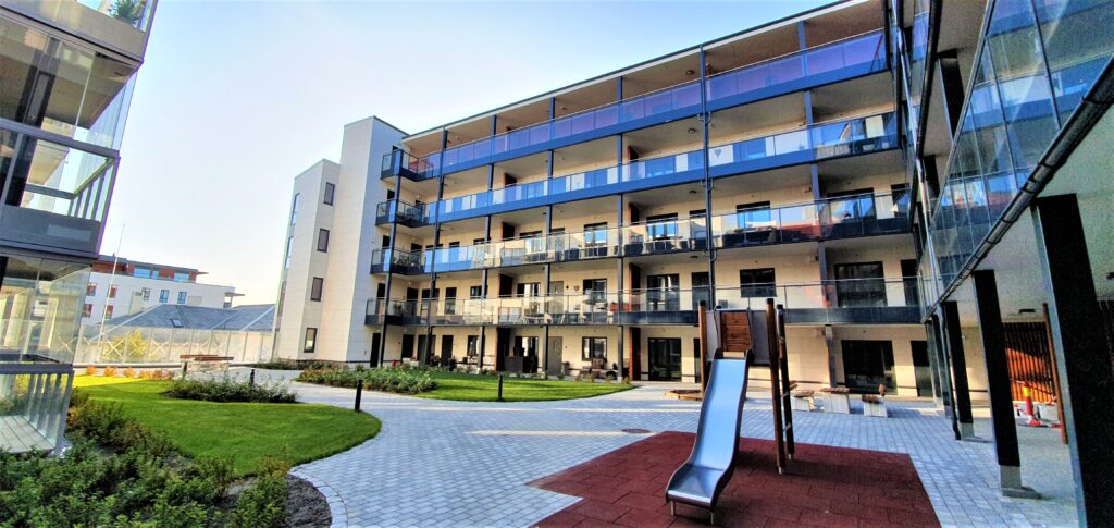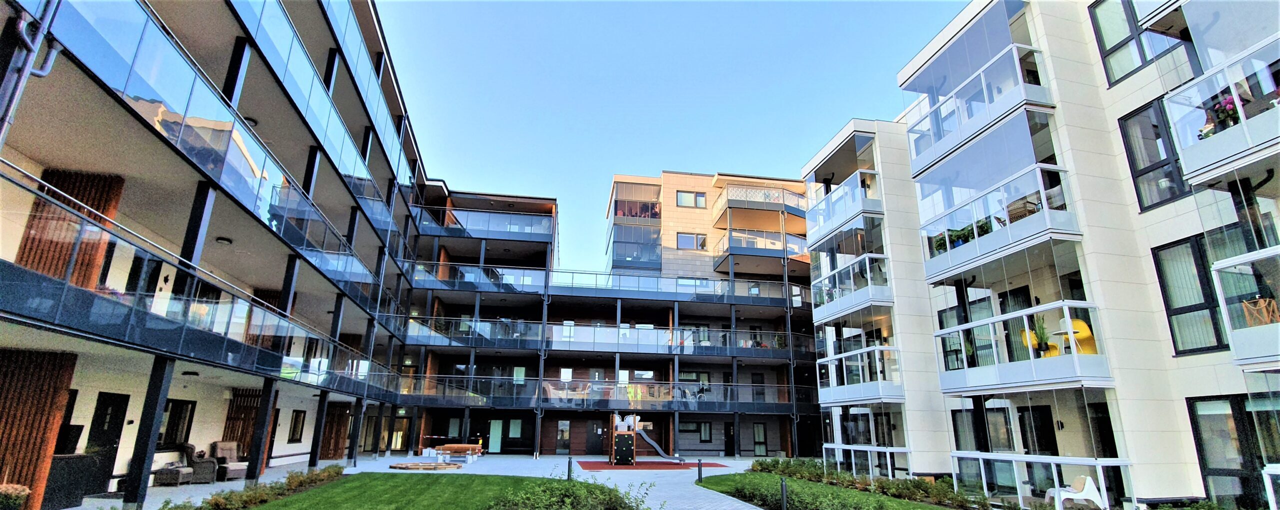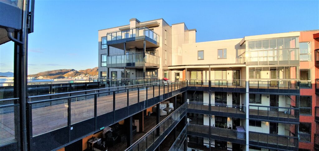 Innore leverte og installerte G-line glassrekkverk for balkonger med integrert glassystem. Denne innovative løsningen kombinerer moderne design med forbedrede sikkerhetsfunksjoner, og gir både estetisk appell og funksjonelle fordeler.
