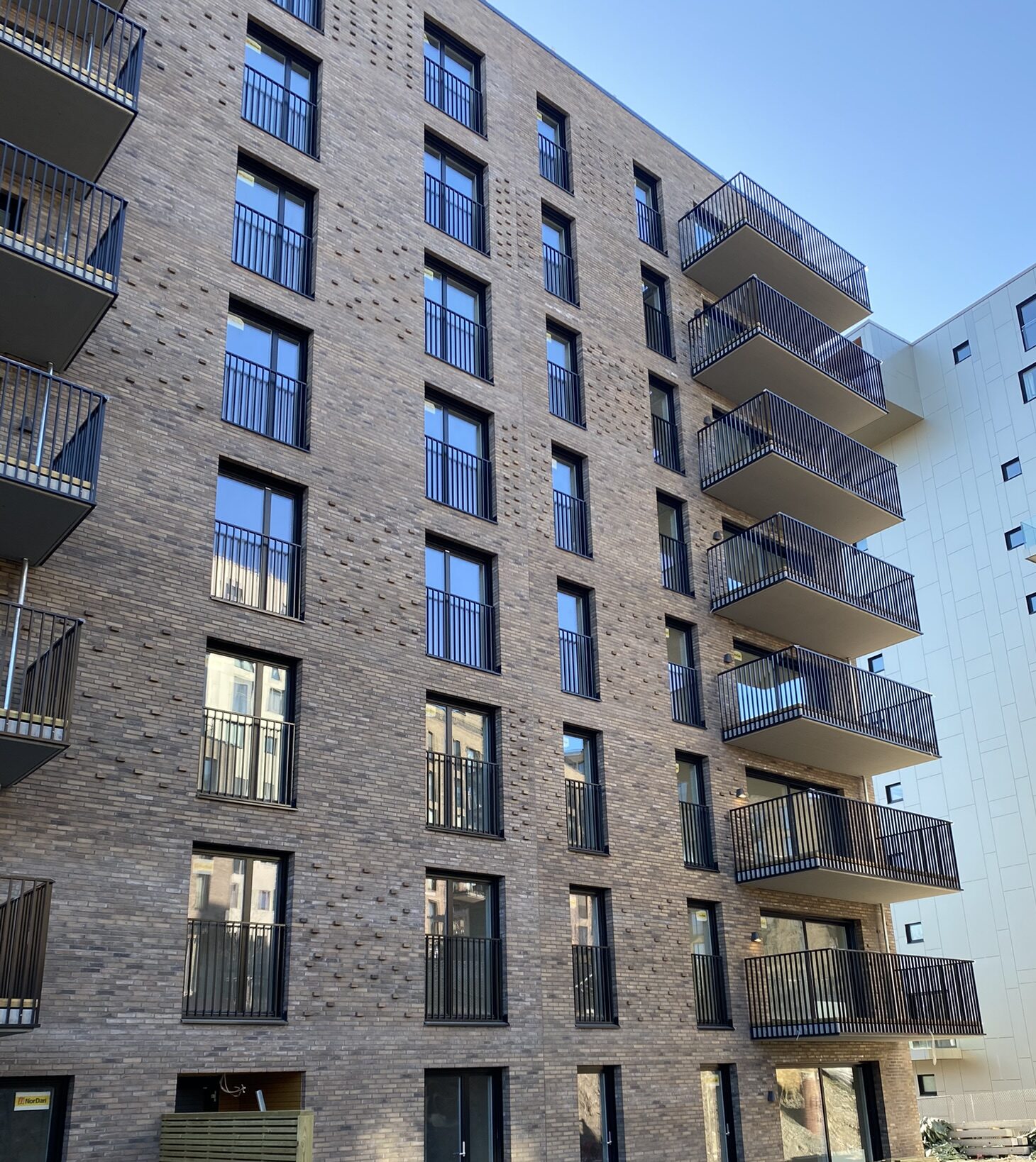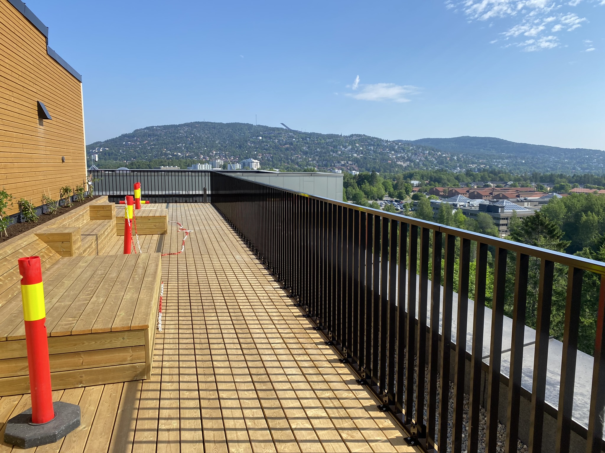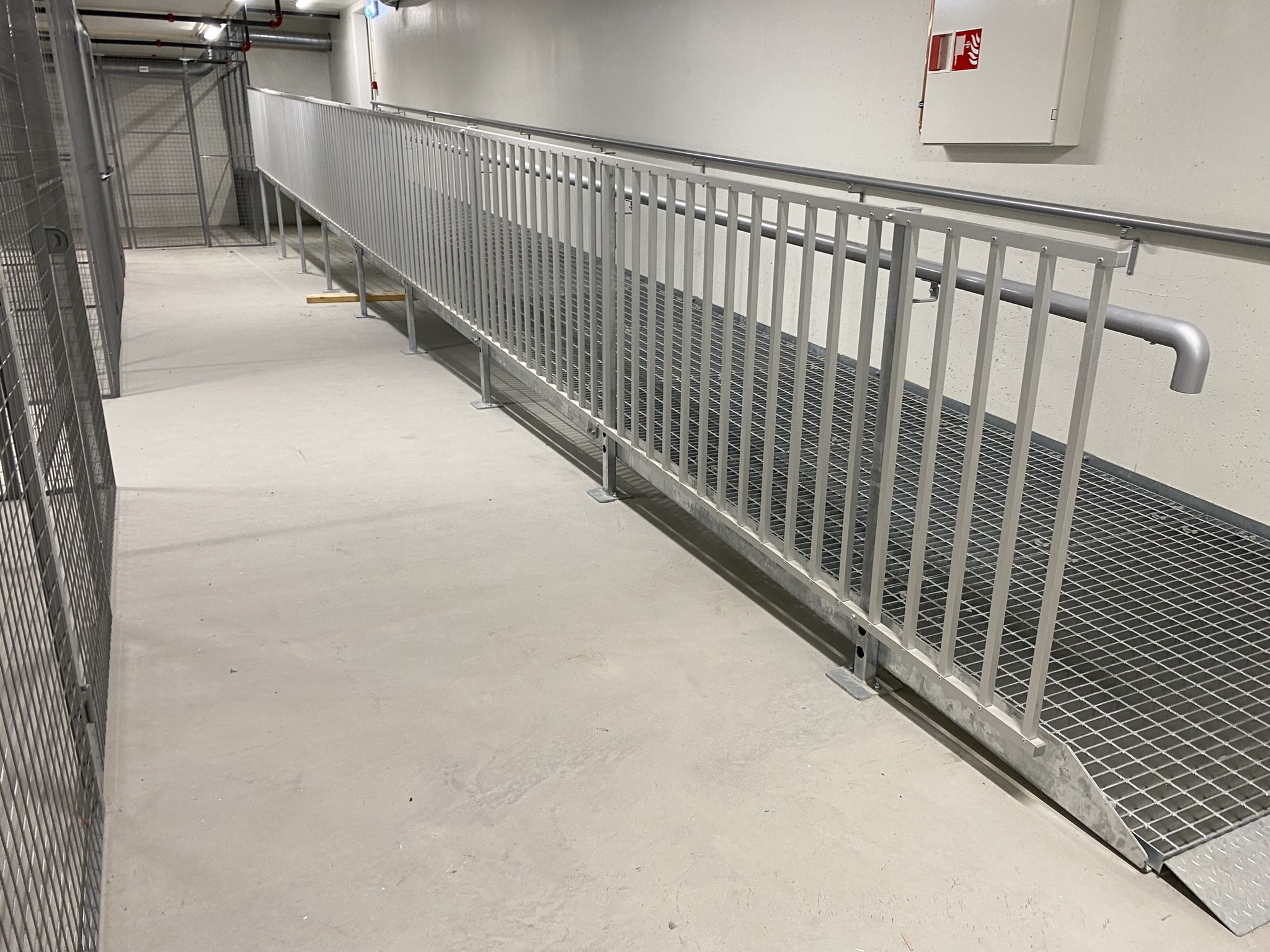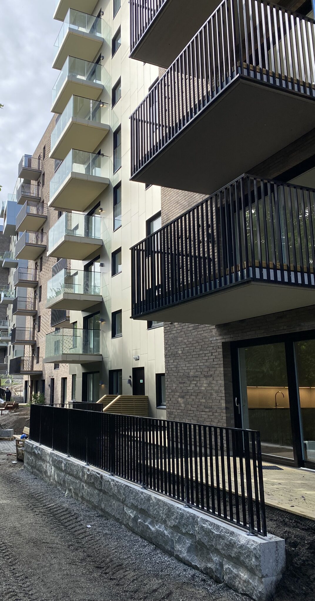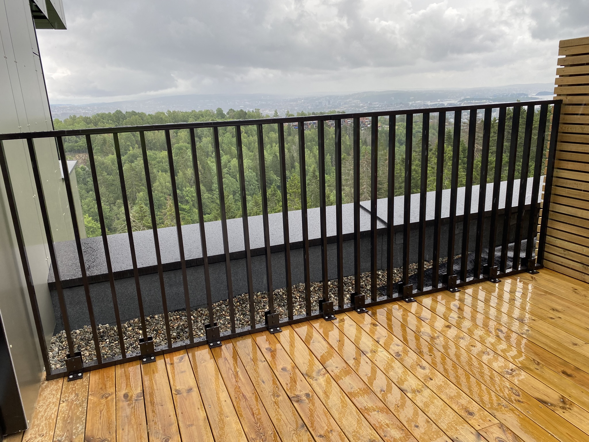 Vi leverte og installerte stakittrekkverk til balkonger og takterrasser, noe som forbedret både sikkerheten og det visuelle inntrykket. I tillegg leverte vi stilige stakittrekkverk til franske balkonger, som ga bygningens eksteriør et raffinert preg. For å forbedre tilgjengeligheten produserte og installerte vi også en holdbar stålrampe som fører til garasjen.