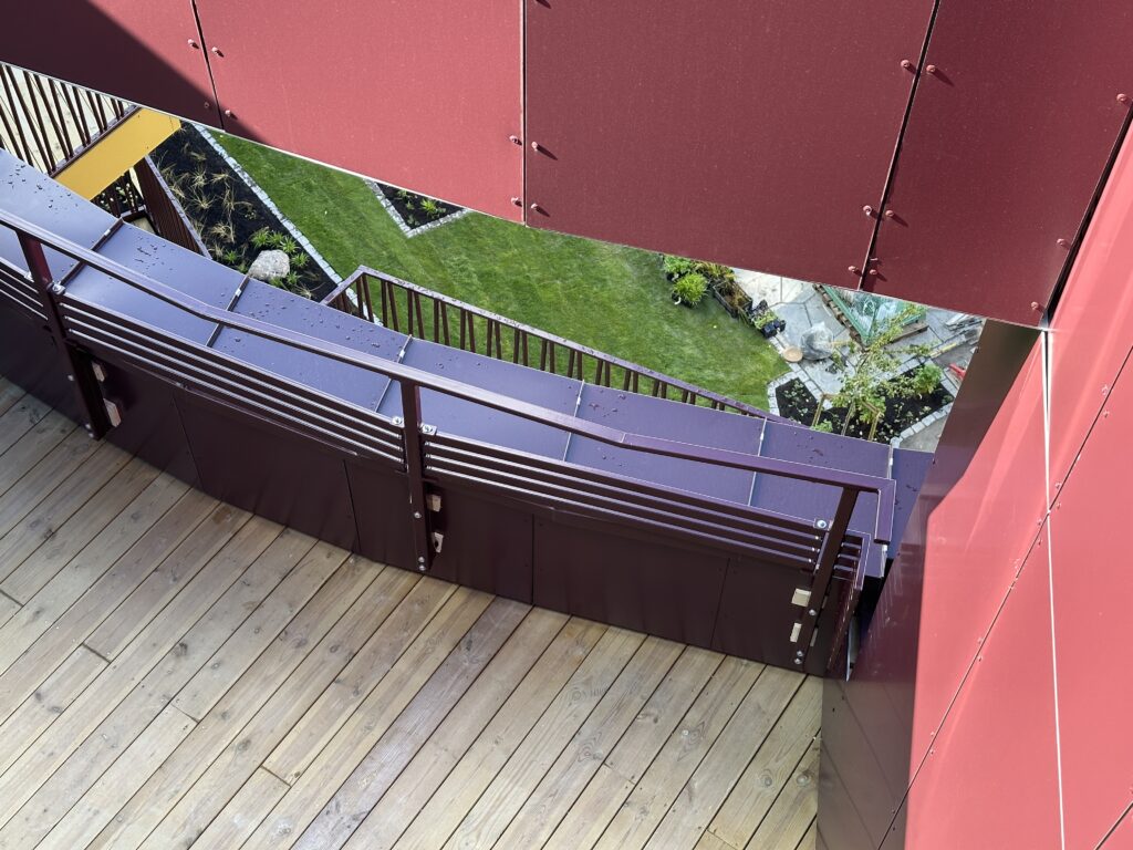 Vi leverte og installerte A-line stakittrekkverk for både utvendige og innvendige områder i en leilighetsbygning i Norge. Prosjektet hadde karakteristiske utvendige rekkverkformer. Prosjektet omfattet også produksjon og installasjon av en spesialtilpasset spiraltrapp, som kombinerer funksjonalitet med estetisk utseende.