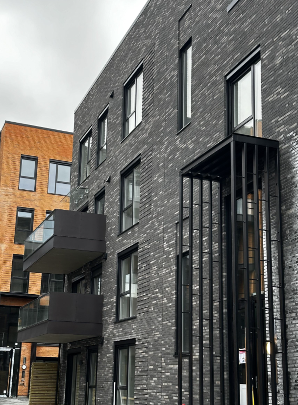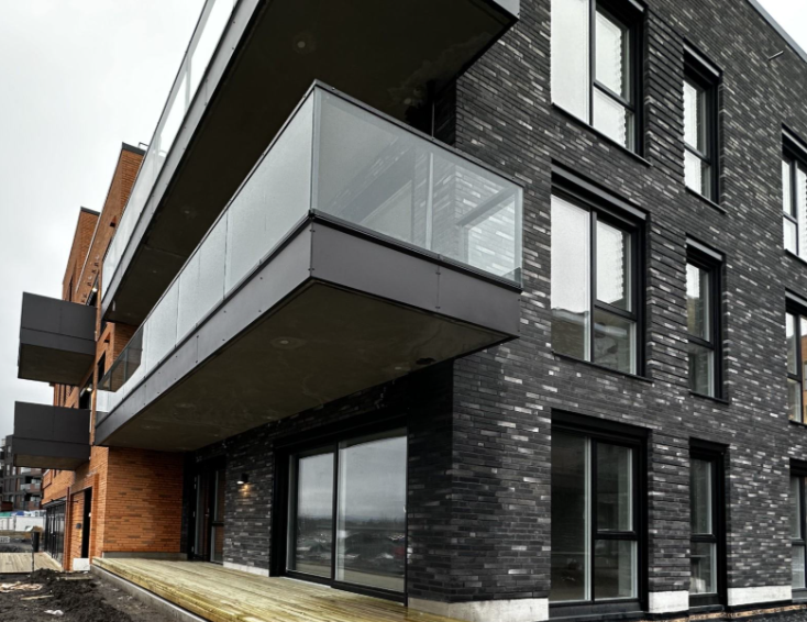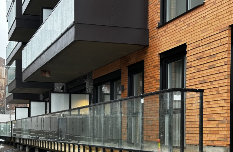 Vi leverte og installerte glassrekkverk for balkonger, takterrasser og gangbroer, som både er sikre og estetisk tiltalende.