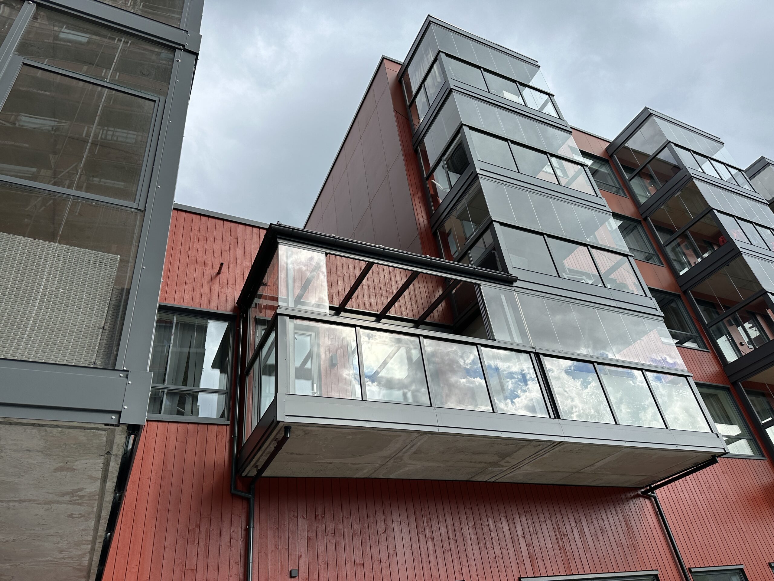 Vi har levert og installert glassrekkverk til balkonger som både er sikre og estetisk tiltalende.