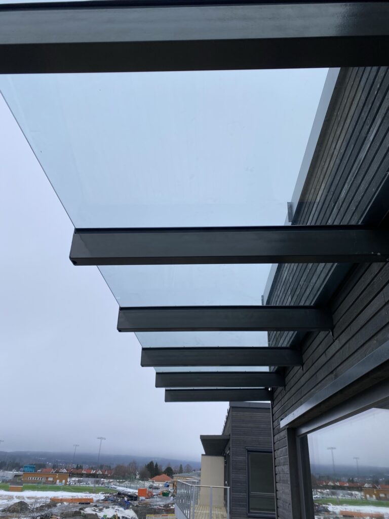 Innore leverte og installerte G-line Bergen glassrekkverk for balkonger, som gir både eleganse og sikkerhet. I tillegg ble det installert elegante og holdbare glassoverbygg, som gir både beskyttelse og visuell appell.
